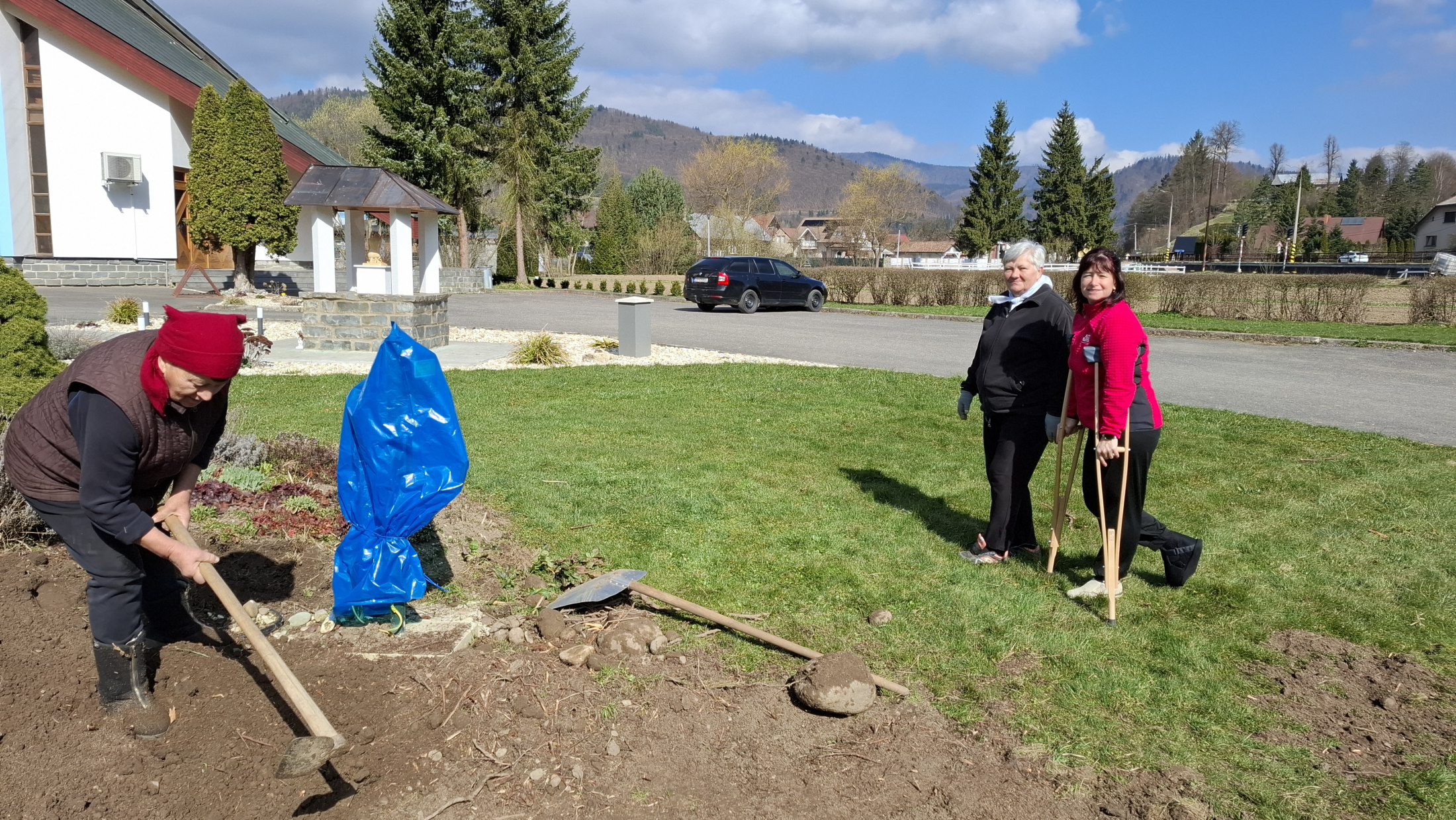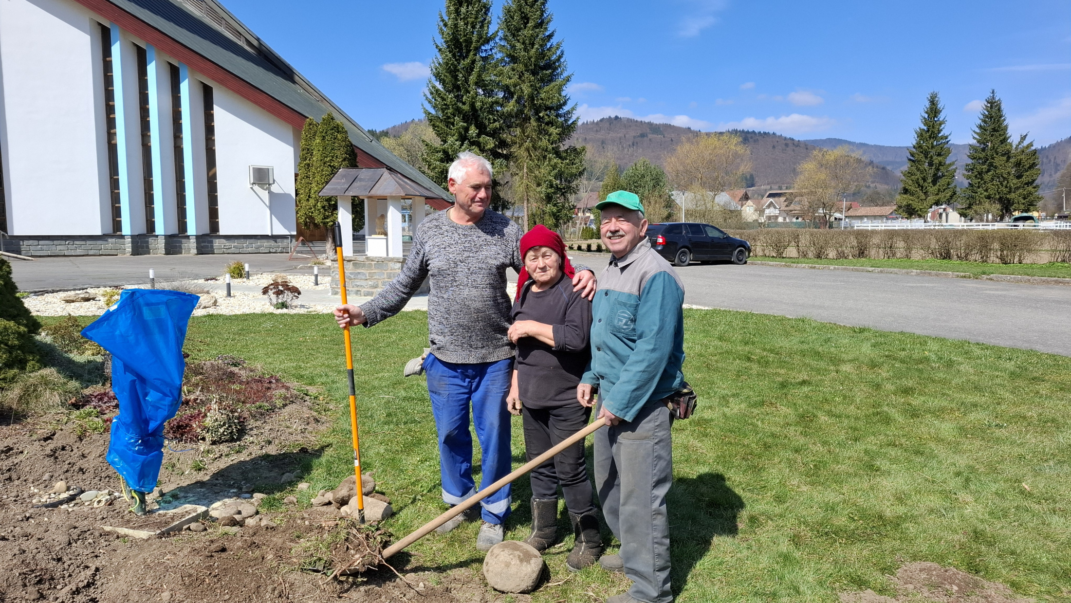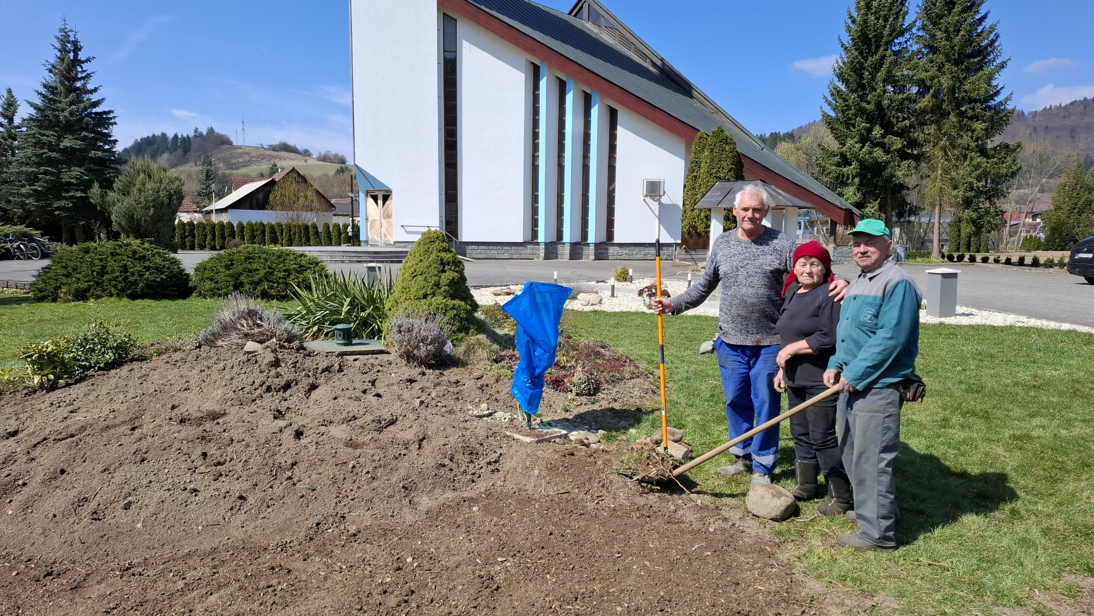 V piatok dňa 10. apríla 2026 sme upravili miesto pri našom Božom chráme. Pri skalke pred vstupom do kostola sme odstránili poškodenú kosodrevinu, uvoľnený priestor bude postupne upravený postavením novej skalky.
