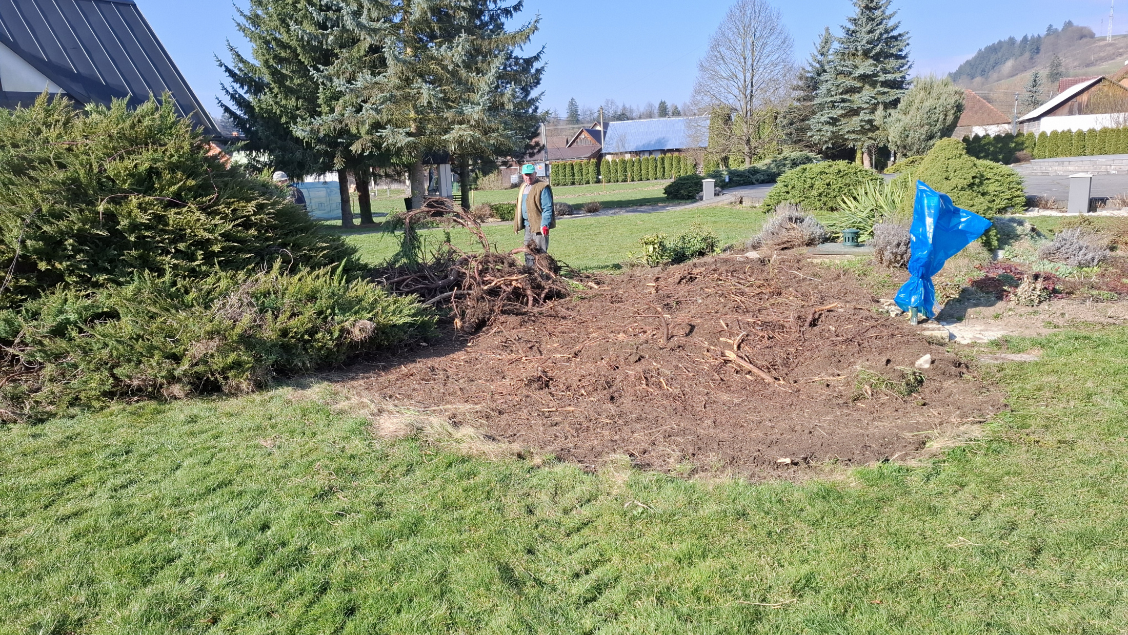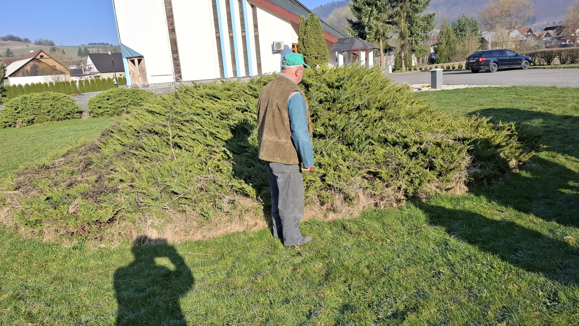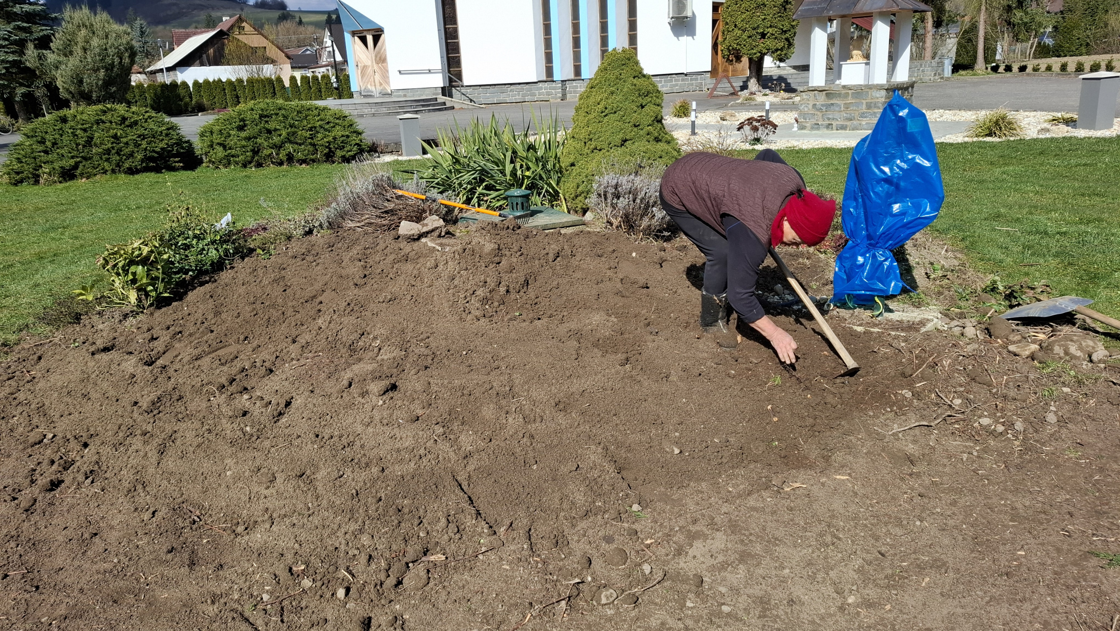 V piatok dňa 10. apríla 2026 sme upravili miesto pri našom Božom chráme. Pri skalke pred vstupom do kostola sme odstránili poškodenú kosodrevinu, uvoľnený priestor bude postupne upravený postavením novej skalky.
