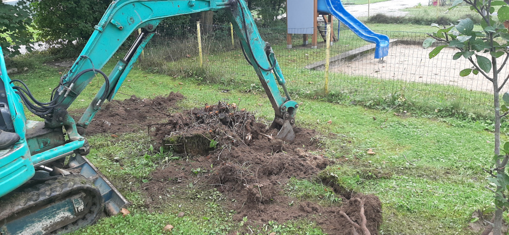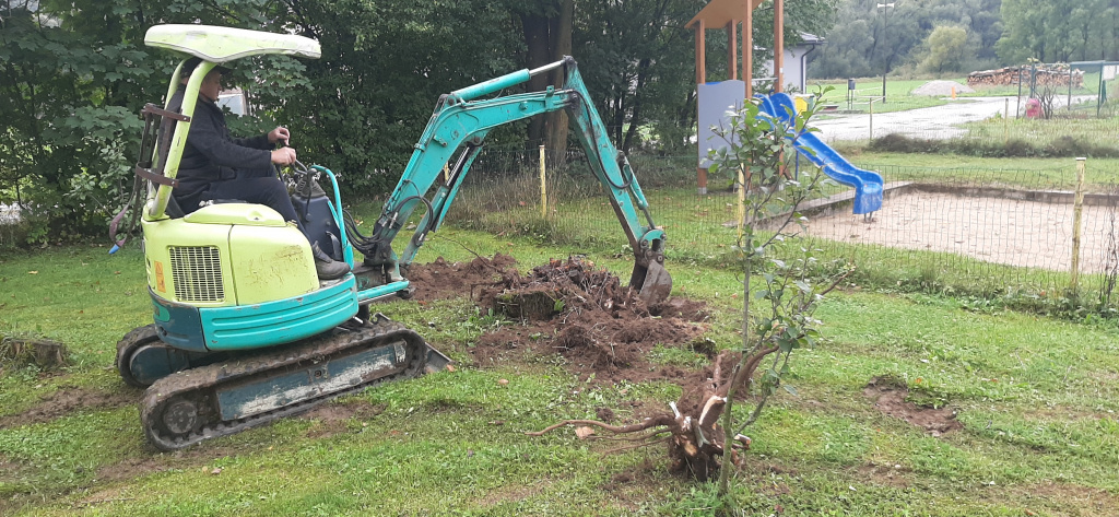 Pri budove materskej školy sme upravili školskú záhradu od rôznych koreňov a nečistôt, čím sme zvýšili bezpečnosť detí, ktoré sa počas dňa v týchto priestoroch hrajú.